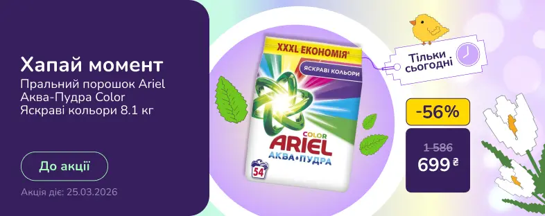 Недоліки: Немаленький розхід - досить швидко закінчується, якщо часто прати