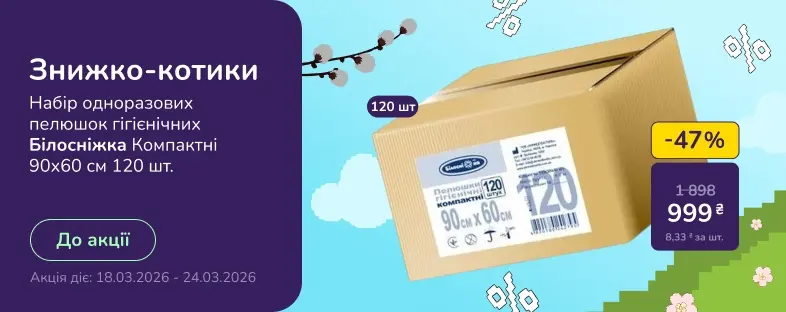 | Пелюшки дитячі гігієнічні Lolly поглинаючі 60x60 см 10 шт. | 88 ₴ |