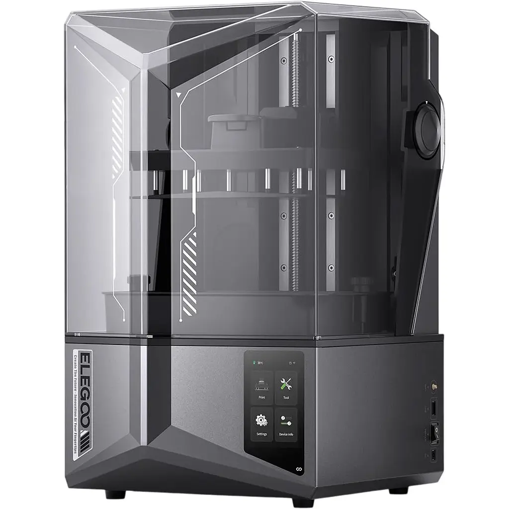 Модель оснащена 10-дюймовим монохромним РК-екраном з роздільною здатністю 11520 × 5120 точок, що забезпечує виняткову чіткість зображення. Точність по осях XY становить 19 × 24 мкм, що дозволяє відтворювати найдрібніші елементи геометрії і текстури. Такий рівень деталізації підходить для друку мініатюр, стоматологічних моделей, ювелірних прототипів і складних інженерних деталей.