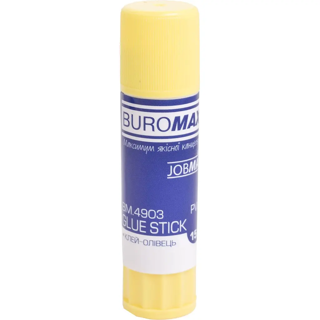 Клей-олiвець Buromax Jobmax завоював свою популярність завдяки своїм чудовим якостям при роботі з папером і картоном, хоча такий клей можна застосовувати та з іншими матеріалами. Клей не токсичний і безпечний для дітей. Легко розчиняємо водою при необхідності легко змивається. Дуже зручний у використанні, економно витрачаються і дуже швидко висихає. Не деформує поверхню склеювання. Після висихання область склеювання стає непомітною. Ковпачок запобігає висиханню клею. На основі PVA (полівінілацетат).