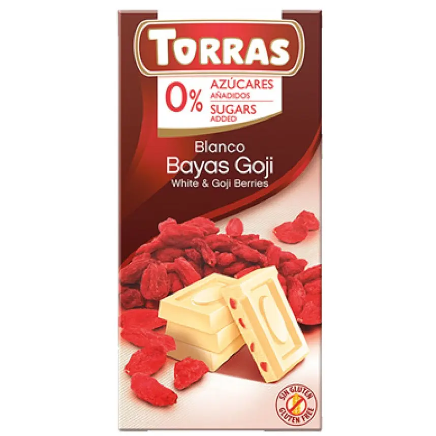 Шоколад білий Torras – це вишукане поєднання ніжного білого шоколаду та суперфуду – ягід годжі, які надають йому особливого фруктового смаку та додаткової користі.