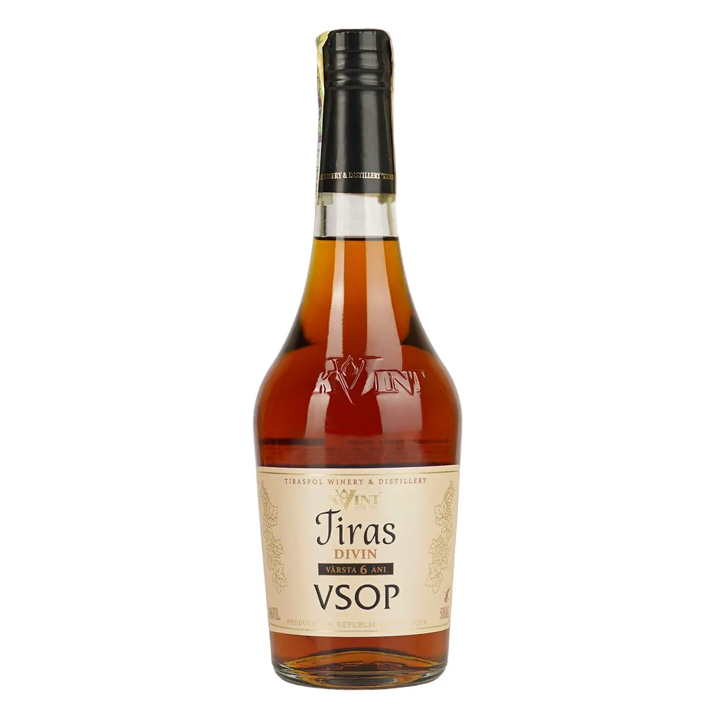 До кінця акції 6 днівДівін Kvint Tiras VSOP має золотисто-бурштиновий колір. Складний аромат з нотами ванілі, сухофруктів та спецій. М'який приємний смак із легкими пікантними та ванільно-квітковими нотками.