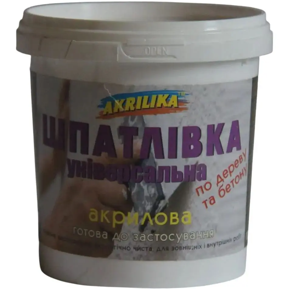 Шпаклівка Akrilika універсальна 0.8 кг. Відносно тверда та з невеликою еластичністю, що рекомендується в основному для механічної обробки, а також для застосування на невеликих поверхнях. Має дуже хорошу адгезію до різних видів основ, проте не рекомендується для застосування на оцинкованій сталі.