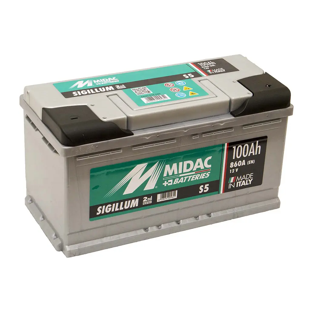 Італійська компанія Midac добре відома якістю своєї продукції по всій Європі та за її межами. Саме Midac – одна з перших акумуляторних компаній, яка впровадила у себе нову технологію виробництва акумуляторних пластин – Punching Greed Technology. Ця технологія дозволяє виробляти ще якісніші, надійніші пластини для акумуляторних батарей. Також це дозволило підвищити стартерні характеристики та збільшити показник довговічності автомобільного акумулятора. Акумулятори серії MIDAC SIGILLUM виготовляються за технологією 'Кальцій-Кальцій' та не потребують обслуговування. Мають низький саморозряд у порівнянні із традиційними акумуляторами. Обладнані подвійною кришкою з лабіринтною системою для кожного окремого осередку, завдяки чому вода з електроліту, що випарувалася, у вигляді конденсату повертається назад в ту ж осередок. Таким чином виключається ризик зменшення рівня електроліту та оголення робочої поверхні пластини, а як наслідок – зниження пускових характеристик.Більша кількість пластин у кожному із шести осередків акумулятора MIDAC SIGILLUM забезпечує на 30 відсотків більшу пускову потужність у порівнянні зі стандартними батареями. Це дозволяє легко запускати двигун навіть у найсуворіший мороз.В акумуляторах SIGILLUM пластини поміщені в скловолоконні сепараторні конверти, що унеможливлює коротке замикання та перешкоджає обсипанню активної маси пластин. Виходячи з цих переваг серія акумуляторних батарей MIDAC SIGILLUM ідеально підходить для роботи на дизельних двигунах.Акумулятори цієї серії рекомендовані для роботи на іномарках із підвищеною кількістю споживачів. Мають добрі робочі показники при коливаннях температури довкілля. Завдяки спеціальній конструкції подвійної кришки, батарея MIDAC SIGILLUM при перевертанні на бік деякий час не пропускає електроліт, а також має надійний захист від попадання іскри всередину батареї. Тому акумулятори MIDAC SIGILLUM конструктивно унеможливлюють вибух АКБ.Акумулятор MIDAC S5 Sigillum 6СТ-100 має стандартні для 'сотки' розміри (353х175х190мм) і підходить практично на всі модифікації мікроавтобусів з дизельними двигунами: MERCEDESRENAULTVOLKSWAGENFIATPEUGEOTCITROEN.Також АКБ MIDAC S5 Sigillum 6СТ-100 є штатним аналогом для використання на автомобілях преміум-класу (як бензинових, так і дизельних): MERCEDES, AUDI, VOLKSWAGEN TUAREG, BMW, RANGE ROVER. Якщо Ви зупинили свій вибір на акумуляторі MIDAC S5 Sigillum 6СТ-100, Ви отримуєте:на 30% більшу потужність запуску та італійську надійність;Стабільну роботу за низьких температур;Повністю необслуговуваний акумулятор;Стійкість до навантажень не стартерного типу.