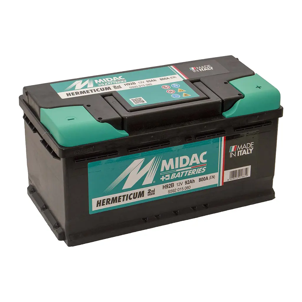 Італійська компанія Midac добре відома якістю своєї продукції по всій Європі та за її межами. Саме Midac – одна з перших акумуляторних компаній, яка впровадила у себе нову технологію виробництва акумуляторних пластин – Punching Greed Technology. Ця технологія дозволяє виробляти ще якісніші, надійніші пластини для акумуляторних батарей. Також це дозволило підвищити стартерні характеристики та збільшити показник довговічності автомобільного акумулятора.Акумулятори серії MIDAC HERMETICUM виготовляються за технологією 'Кальцій-Кальцій' і не потребують обслуговування. Мають низький саморозряд у порівнянні із традиційними акумуляторами.Обладнані подвійною кришкою з лабіринтною системою, завдяки чому вода, що випарувалася з електроліту у вигляді конденсату, повертається в акумулятор. Таким чином виключається ризик зменшення рівня електроліту та оголення робочої поверхні пластини, а як наслідок – зниження пускових характеристик.Виходячи з цих переваг серія акумуляторних батарей MIDAC HERMETICUM ідеально підходить для вітчизняних умов експлуатації.Акумулятори цієї серії рекомендовані для роботи на іномарках із підвищеною кількістю споживачів.Має добрі робочі показники при коливаннях температури довкілля.Завдяки спеціальній конструкції подвійної кришки, батарея MIDAC HYPERBOLIS при перевертанні на бік деякий час не пропускає електроліт, а також має надійний захист від попадання іскри всередину батареї. Тому акумулятори MIDAC HYPERBOLIS конструктивно унеможливлюють вибух АКБ.Акумулятор Акумулятор 6СТ-92A MIDAC HERMETICUM, 12V, 92Ah, R зібраний у низькому корпусі (353х175х175мм) через конструктивні особливості застосовуваної пластини. Це необхідно для автомобілів, у яких посадкове місце акумулятора знаходиться під сидінням у салоні. Крім того, даний типорозмір є штатним акумулятором для FORD і VOLVO, а у вітчизняних умовах ідеально підходить для роботи на автомобілях: SKODA, VOLKSWAGEN, MERCEDES, AUDI, RENAULT, PEUGEOT, CITROEN.Купуючи акумулятор Акумулятор 6СТ-92A MIDAC HERMETICUM, 12V, 92Ah, R Ви отримуєте на 30% більшу потужність запуску та італійську надійність.