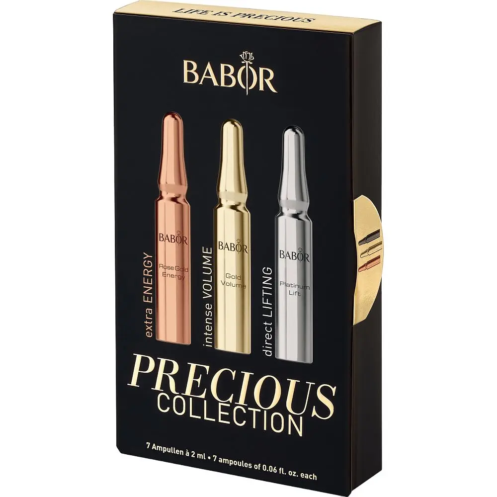 Ампули для обличчя Babor - це фантастичне поєднання активних компонентів, інноваційних технологій та натуральних речовин, що цілеспрямовано діють на покращення структури шкіри. Ampoule Precious Collection забезпечує ефективне відновлення та делікатне пом'якшення шкіри, шляхом прискореної регенерації тканин та клітинного оновлення, синтезу природних білків.