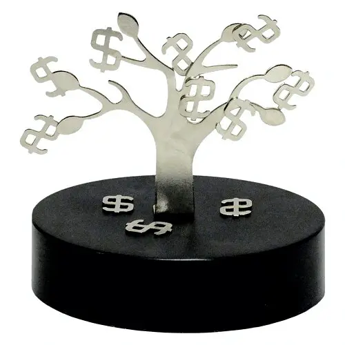 Настільний антистрес (фігурка, статуетка) з магнітною підставкою, на яку ставиться металеве дерево, а на нього чіпляються значки долара.