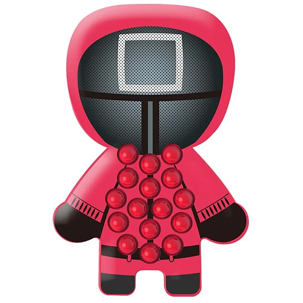 Цей антистрес ідеально підходить для фанатів серіалу «Гра в кальмара», дітей і підлітків від 5 років, офісних працівників, студентів чи всіх, хто шукає стильний і функціональний спосіб зняти стрес, з яскравими кольоровими бульбашками та унікальним дизайном героя Netflix висотою 24 см у червоному кольорі.