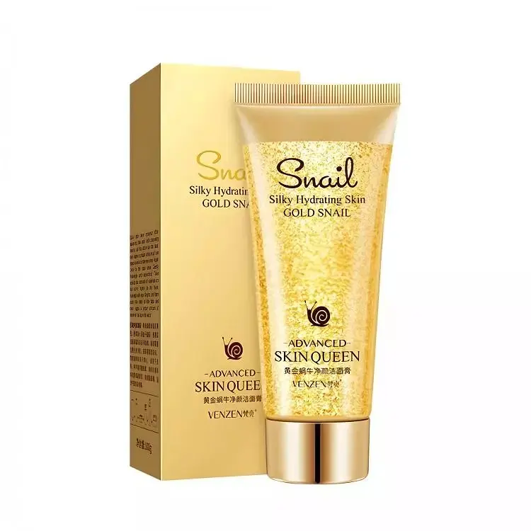 Антивікова пінка для щоденного очищення шкіри Venzen Gold Snail – делікатний засіб для догляду за зрілою шкірою обличчя. Збагачена муцином равлика і нанозолотом, пінка ретельно очищає, зволожує і сприяє омолодженню епідермісу.