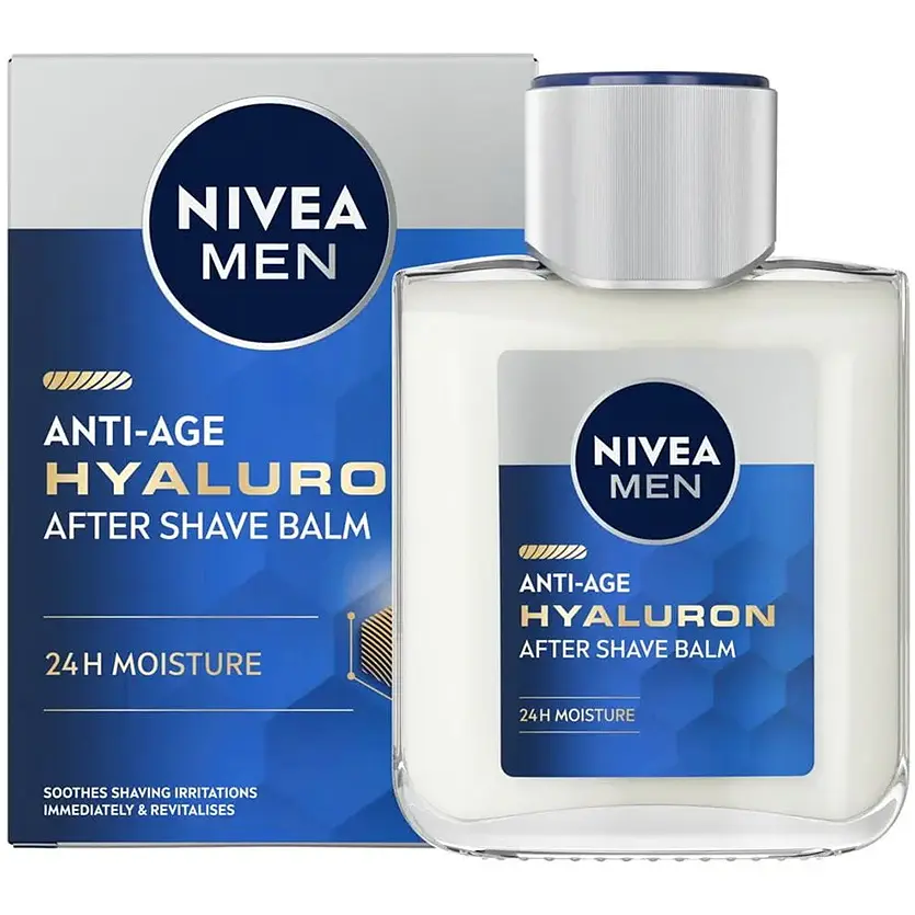 Антивіковий бальзам після гоління Nivea Men Гіалурон миттєво заспокоює подразнену шкіру після гоління. Його зволожувальна дія триває протягом дня.