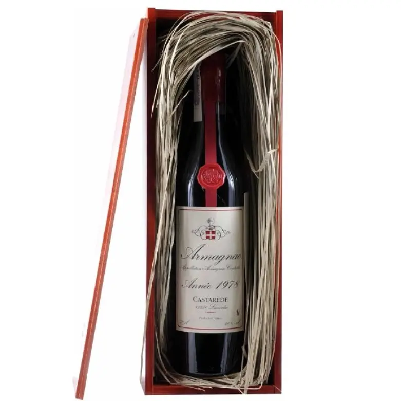 Арманьяк Armagnac Castarede Armagnac Castarede 1978 чистого, мідно-бурштинового кольору з глибоким ароматом стиглих груш, сухофруктів, тушкованих фруктів з делікатними ванільними тонами, пряністю кориці та кедрового дерева.
