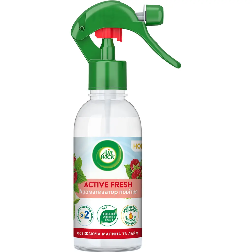 Ароматизатор повітря Air Wick "Освіжаюча малина та лайм" створює приємну атмосферу в кімнаті з яскравим ароматом малини та лайма. Легко використовувати, і його запах швидко заповнює простір, надаючи свіжості.