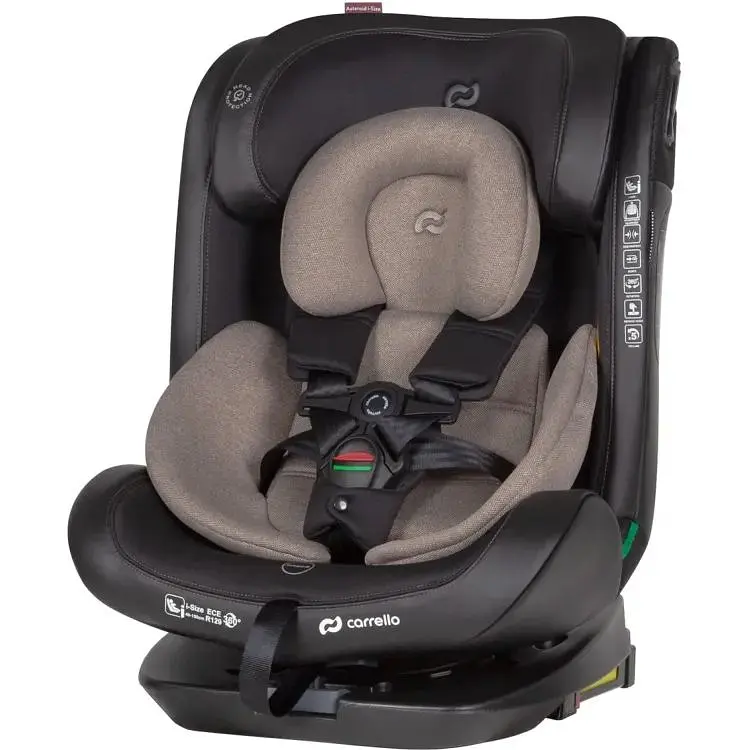 Універсальне дитяче автокрісло відповідає сучасному стандарту I-Size. Обладнано захистом від бічних ударів, системою кріплення Isofix, Top Tether (якірний ремінь) і поворотом на 360°. Директива ECE R129 передбачає обов'язкове перевезення дітей до 15 місяців проти ходу руху. Вік 0-12 років для росту від 40 до 150 см. Установка: спиною проти руху для дитини від 40 до 105 см, по ходу руху від 76 до 150 см. Максимальний кут нахилу 145. Чохол автокрісла виконаний з гіпоалергенного текстилю з використанням матеріалу Memory Foam. 5-ти точкові ремені безпеки з додатковим замком від вислизання на ременях.