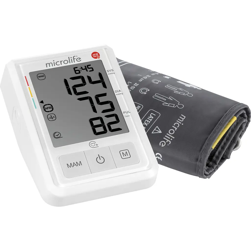 Автоматичний цифровий вимірювач артеріального тиску Microlife BP B3 Afib - якісний та точний прилад для домашнього використання. Автоматичний тонометр з виявленням миготливої аритмії з технологіями AFIB, МАМ і IHB. Можливість роботи від електромережі та від батарейок. Універсальна конусоподібна манжета 22-42 см. 60 місяців офіційної гарантії від виробника на тонометр та 12 місяців на манжету.