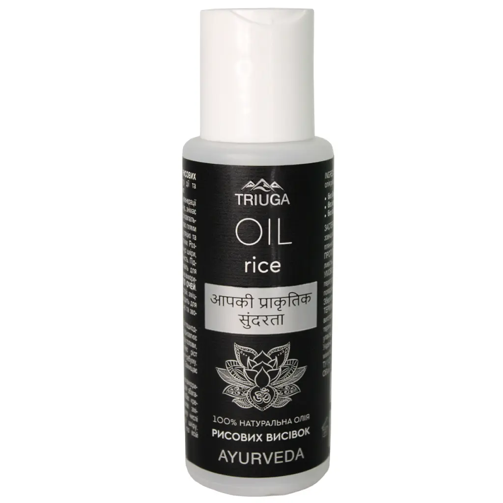 Олія для волосся Triuga Ayurveda Rice Oil Рисові висівки - натуральний засіб на основі олії рисових висівок, який забезпечує інтенсивний догляд і захист волосся, підтримуючи його здоров’я, силу та блиск.
