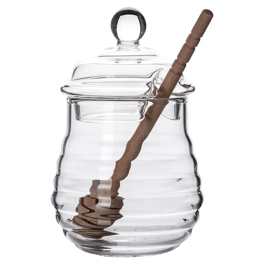 Купив недавно банку для меду Viva Honey з ложкою на 280 мл, і чесно кажучи, дуже задоволений! Виглядає стильно, скло міцне, а ложка дерев’яна – взагалі класна штука, зручно набирати мед, нічого не капає. Об’єм нормальний, якраз для мене, бо люблю свіжий мед потроху брати. Мити легко, хоча ложку я просто протираю, щоб не псувалася. Єдине, кришка не дуже щільно закривається, то якщо мед довго стоятиме, то, мабуть, краще перекласти кудись. Але для щоденного використання – топ! Раджу, якщо шукаєте щось просте і красиве для меду.