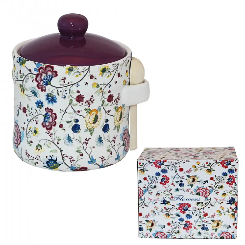 Банка для меду з дерев'яною ложкою SnT (СНТ) Квітковий шовк дозволить зручно і якісно зберігати мед, адже кришка забезпечує йому свіжість, захищає від сонячних променів і пилу.