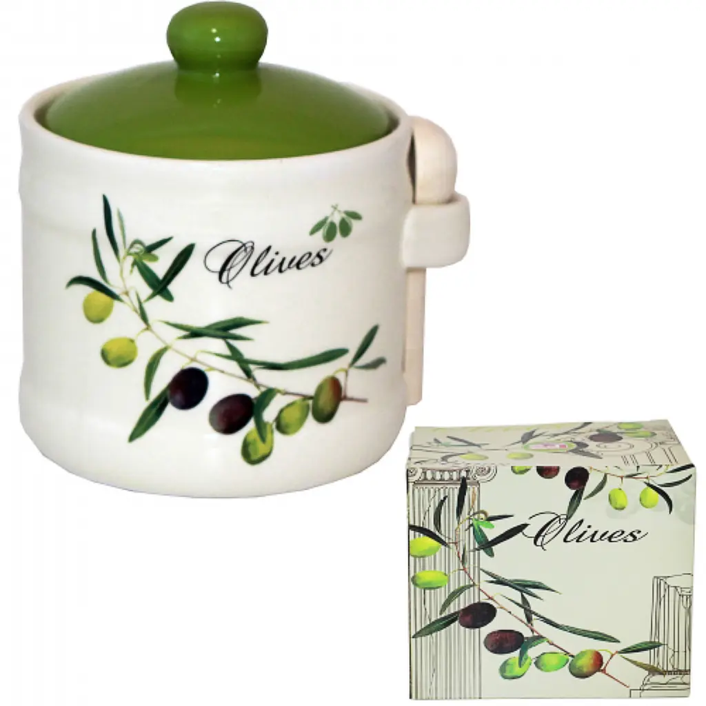 Банка для меду з дерев'яною ложкою SnT Оливки дозволить зручно і якісно зберігати мед, адже кришка забезпечує йому свіжість, захищає від сонячних променів і пилу.