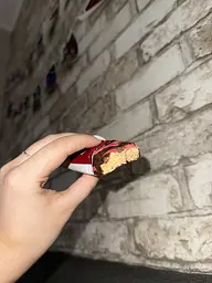 КБЖУ гарне і білка багато (20г). Смак «Вишня-шоколад» реально зайшов, він не хімозний, відчувається легка кислинка, що круто збиває солодкість. По консистенції він мʼякий та не резиновий, на перекус ідеально.