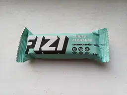 Батончик має корисний склад без шкідливих добавок, тому можна сміливо брати як перекус в дорогу чи для дітей. Смак ніжний і багатошаровий - кокос, мигдаль та печиво вдало поєднуються, без надмірної солодкості. Добре смакує з кавою чи чаєм, підходить і спортсменам після тренування. З мінусів - в спеку не витримує транспортування, у посилці розтанув і втратив форму. Також ціна дещо завищена. Але загалом батончик вартий спроби, особливо хочеться протестувати й інші смаки Fizi.