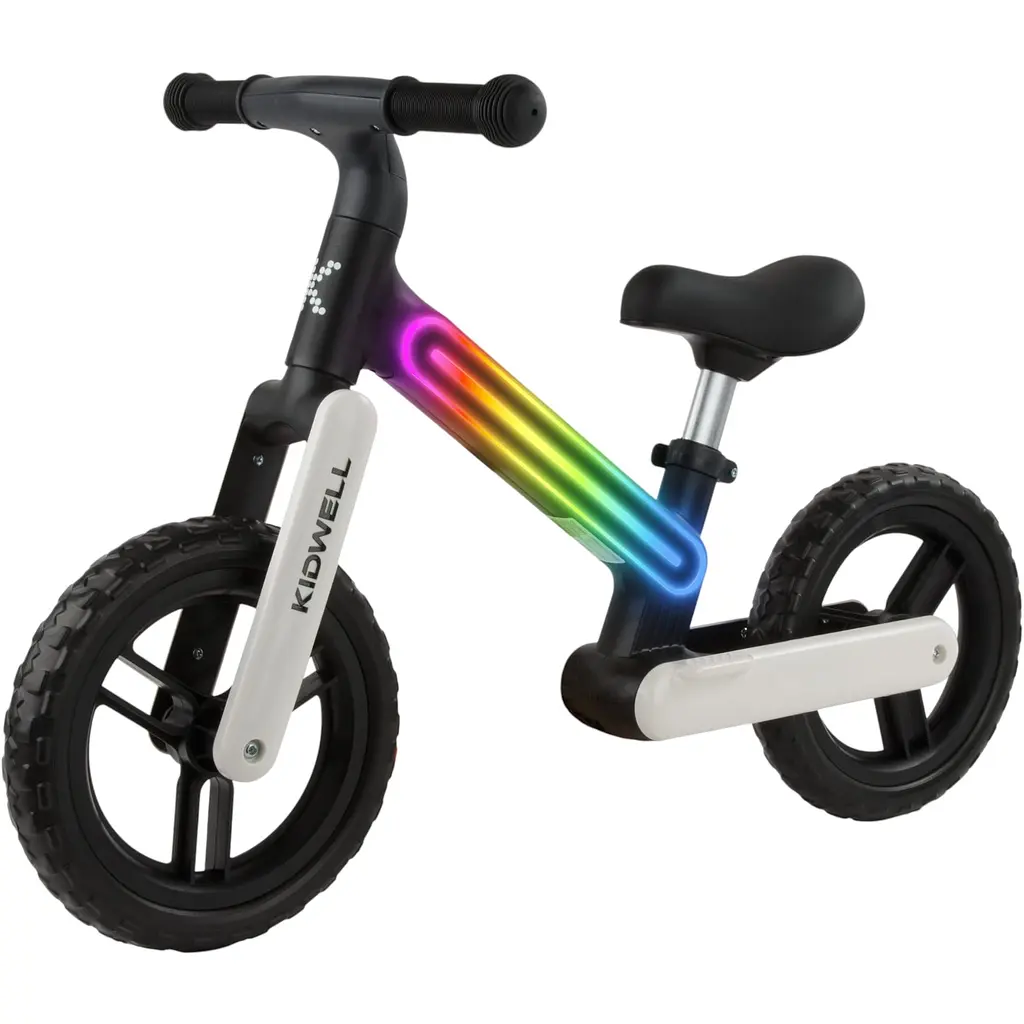 Його найбільшою перевагою є світлодіодне підсвічування, завдяки якому дитину буде чудово видно і в погану погоду, і коли на вулиці похмуро, а веселощі в самому розпалі. Це значно підвищить безпеку під час використання. Має до 20 світлових послідовностей. Каркас додатково виготовлено з дуже міцного нейлону, який використовують у промисловості для виготовлення елементів, що витримують високі навантаження. При вазі всього 3,05 кг ваш малюк без зусиль навчиться зберігати рівновагу і поліпшить координацію рухів.