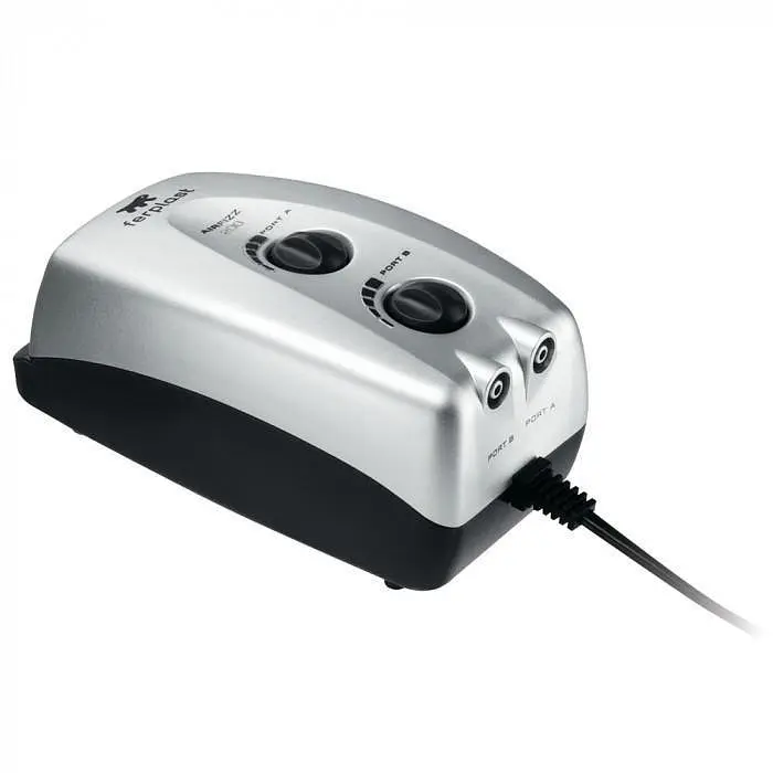 Airfizz — безшумний компресор для акваріумів з регульованим потоком води. У комплекті ви знайдете силіконовий шланг (2 м) і зворотний клапан. Airfizz кріпиться до стінки завдяки отвору; може бути розміщений у різному положенні, вище або нижче рівня води. Доступні чотири моделі з одним або двома вихідними патрубками: 1 вихідний патрубок для моделей Airfizz 50 і 100, два вихідні патрубки для моделей Airfizz 200 і 400. Гумові ніжки на основі сприяють зменшенню вібрації. У комплекті з компресором Airfizz ми рекомендуємо вам використовувати розпилювачі air stones від компанії Ferplast: їх легко встановити на вихідні патрубки.