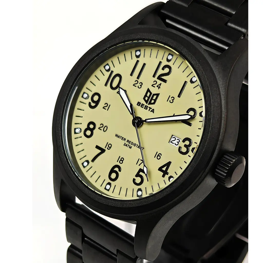 Besta Command - командирський годинник розроблений фірмою Besta.Besta - це український бренд якісних годинників. Кожна модель створена для тих, хто цінує якість, інноваційний дизайн і функціональність. • Бренд: Український бренд із власними запатентованим дизайнами. • Механізм: Надійний механізм забезпечує точний хід. • Гарантія: 12 місяців гарантії підтверджують якість годинників. • Міцність: Витримують високі навантаження та екстремальні умови.Ззаду виконане витончене гравіювання Тризуба та напис Героям Слава!Примітка: Ремінець який зображено на головному фото являється додатковим і вкладається в посилку окремо.