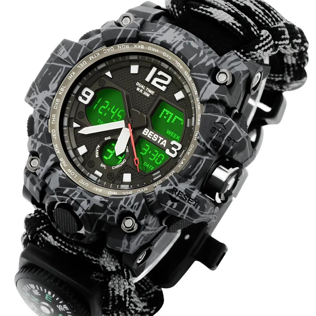 Besta Life Pro Grey - лімітована новинка у сірому хакі кольоріМодель Besta Life Pro Grey - це особливий годинник із популярної серії Besta Military, створений в Україні спеціально для військових та тих, хто живе в ритмі перемоги. Кожна деталь розроблена з урахуванням потреб захисників, а дизайн поєднує стиль і максимальну практичність.Унікальний дизайн та символіка: • Лімітований колір сірий хакі - стриманий, але потужний акцент на руці. • На звороті циферблата нанесено напис “ГЕРОЯМ СЛАВА!” - справжній символ сили та незламності.Практичний функціонал: • Компас для орієнтування у будь-яких умовах. • Паракордовий ремінець - може використовуватись у польових ситуаціях для виживання. • Підсвітка - гарантує зручність навіть у темряві. • Стійкість до води та морозів - годинник витримує складні умови служби чи екстремальних подорожей.Бренд, що народився в Україні:Besta - молодий український бренд, який створює годинники для тих, хто не боїться викликів. Це не просто аксесуар, а надійний тактичний інструмент, розроблений у співпраці з військовими.Офіційна гарантія: 12 місяців впевненості у якості та оригінальності.