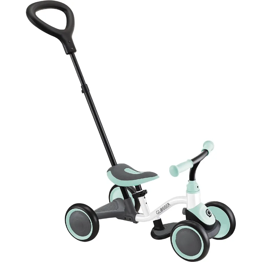 Насолоджуйтесь ексклюзивними функціями Globber, які забезпечують комфорт і безпеку завдяки запатентованій системі рульового керування, регульованій батьківській ручці, а також системі повороту задньої частини біговелу!
