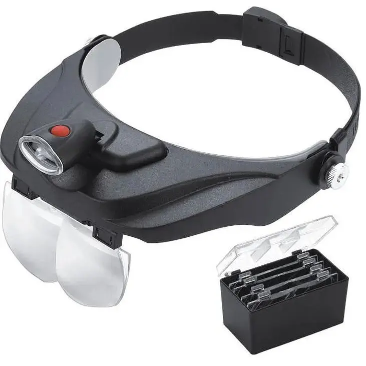 Лупа налобна з набором змінних лінз і світлодіодною підсвіткою Magnifier 81001-F