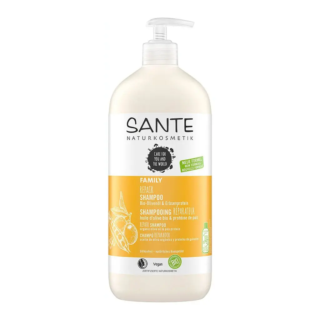 Протеїновий шампунь SANTE – це швидка допомога млявому волоссю, адже білок гороху у складі живить, відновлює волосся, повертаючи їм здоровий блиск.