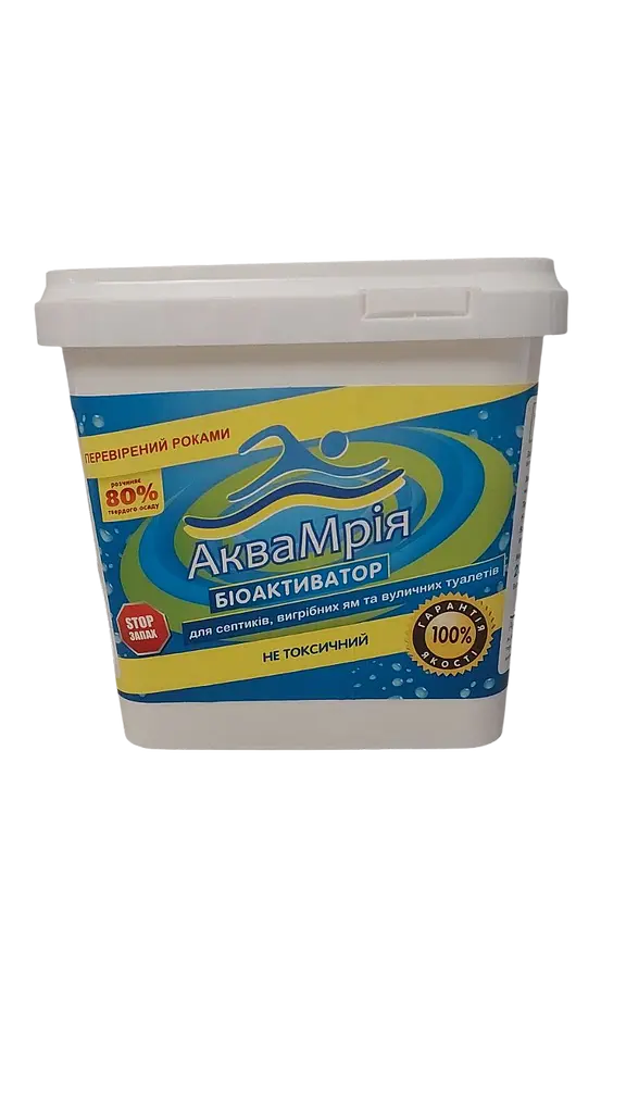 Біоактиватор АКВА МРІЯ – це суміш штучно вирощених бактерій, дріжджів та ензимів, прискорюючи розкладання стоків. Біоактиватор стійкий до побутового використання миючих засобів і пральних порошків. Екологічно безпечний, не містить хімічних речовин, повністю розкладається, не токсичний, безпечний для людини, тварин і рослин, не шкідливий для труб.