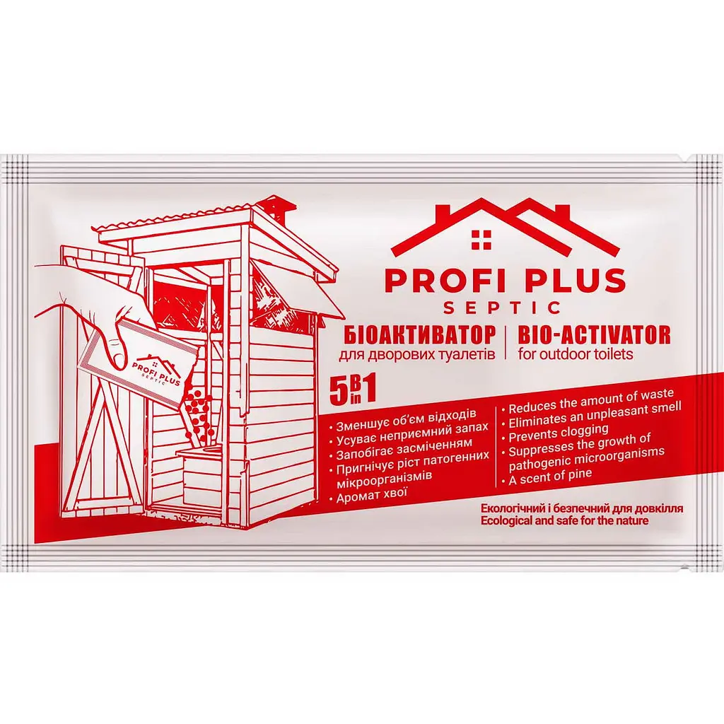 Біоактиватор для дворових туалетів Profi Plus Septic 5 в 1 складається з ретельно підібраних бактеріальних культур та ензимів, які розщеплюють відходи на безпечні елементи - воду, вуглекислий газ та азот. Об'єм стічних вод та осаду зменшується, що збільшує інтервали між їх відкачуванням з ями.