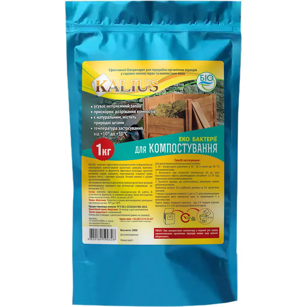 Біопрепарат для компосту Kalius призначений для прискорення розкладання органічних залишків. Спеціальні бактерії (В. subtilis і В. Licheniformis), вирощені в лабораторних умовах, висушуються з особливих технологій і перемішуються з поживними для мікроорганізмів мінеральними речовинами. У такому вигляді ці бактерії можуть тривалий час зберігатися в сплячому стані, в очікуванні виконання своєї місії.