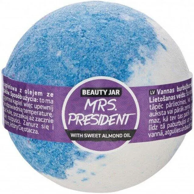 Бажаєте насолодитися справжнім спа-доглядом, не виходячи з дому? Зверніть увагу на бомбочку для ванни Beauty Jar Mrs. President. Завдяки її натуральним компонентам усуваються спазми, відкриваються і очищуються пори, а настрій — піднімається.