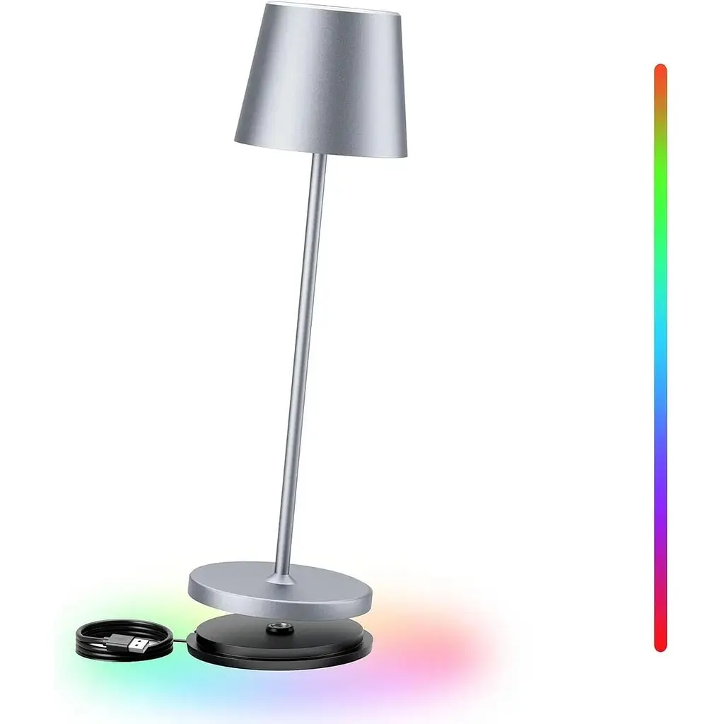 Brightower світлодіодна настільна лампа на батарейках сенсорна димована настільна лампа Бездротова із зарядною станцією, теплий білий 8 кольорів RGB Алюмінієва зовнішня настільна лампа Водонепроникний для читання, роботи, барів, ресторанів