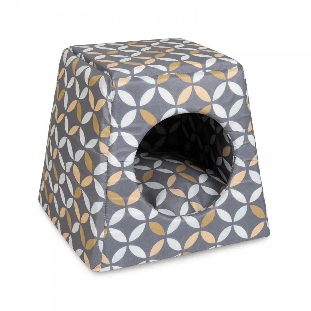 Практичний будинок з м'якої бавовняної тканини сподобається невеликим собакам. Лежак-трансформер можна використовувати в 2 положеннях: як будиночок з круглим входом і м'якою подушкою всередині; як лежак-диван – потрібно лише натиснути долонею на «дах» будиночка, попередньо вийнявши з нього подушку, а потім покласти її назад в лежак.