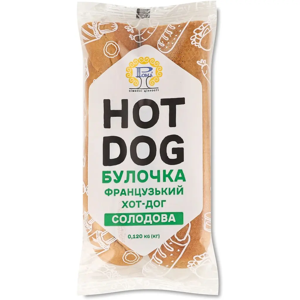 Булочка Рома Французький хот-дог солодова - це якісний напівфабрикат, створений для приготування смачних та апетитних хот-догів. Завдяки спеціальній рецептурі булочка має ніжну текстуру, приємний солодовий смак і аромат, що відмінно поєднується з різноманітними начинками.