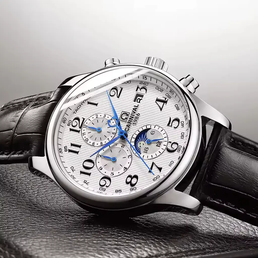 Чоловічі механічні годинники Carnival – це втілення престижу та надійності у кожній деталі. Оснащені високоточним японським механізмом із 25 каменями, вони забезпечують стабільну та довговічну роботу. Завдяки сапфіровому склу годинник стійкий до подряпин і зберігає бездоганний вигляд протягом багатьох років.Ми пропонуємо офіційну гарантію 12 місяців та є єдиними ексклюзивними представниками Carnival в Україні, що гарантує оригінальність кожної моделі.Основні переваги Carnival: • японський механізм із 25 каменями; • міцне сапфірове скло; • офіційна гарантія 12 місяців; • ексклюзивна дистрибуція в Україні; • преміальний дизайн та бездоганна якість.Годинники Carnival створені для чоловіків, які цінують престиж, точність та безкомпромісну якість.