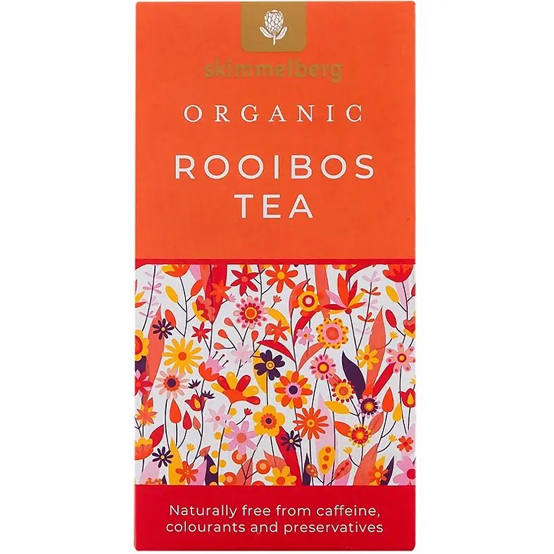 Натуральний чай Ройбуш Skimmelberg з м'яким, свіжим смаком і горіховими відтінками. Унікальний рослинний продукт, що росте виключно в Південноафриканській області Седерберг, Західний Кейп, славиться своїми ендемічними якостями. Листя ройбуша, що набуває червонуватого відтінку, традиційно використовували місцеві жителі для створення чудового освіжаючого напою.