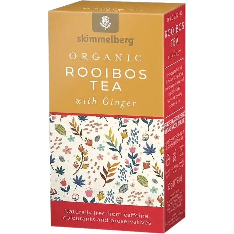 Чай Skimmelberg пропонує освіжаючу органічну суміш ройбуша з імбиром, збагачену цедрою апельсина і лимона. Вироблений у Південній Африці, цей чай втілює момент задоволення й умиротворення, завдяки гармонійному поєднанню смаків і ароматів. Він пробуджує почуття і підкреслює цінність природи, запрошуючи насолодитися кожним ковтком цієї унікальної та відновлювальної суміші.