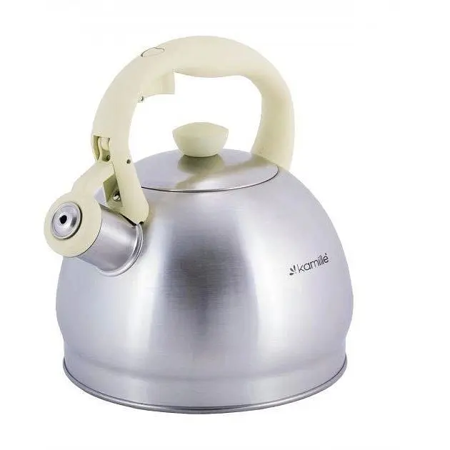 Витончений та місткий чайник Kamille 2 л зі свистком ідеально впишеться в інтер'єр будь-якої сучасної кухні. Його відполірована до блиску поверхня додає гарного настрою будь-якому чаюванню і служить прикрасою столу. Ергономічна ручка та зручна система відкривання забезпечують комфорт та безпеку під час приготування гарячих напоїв.