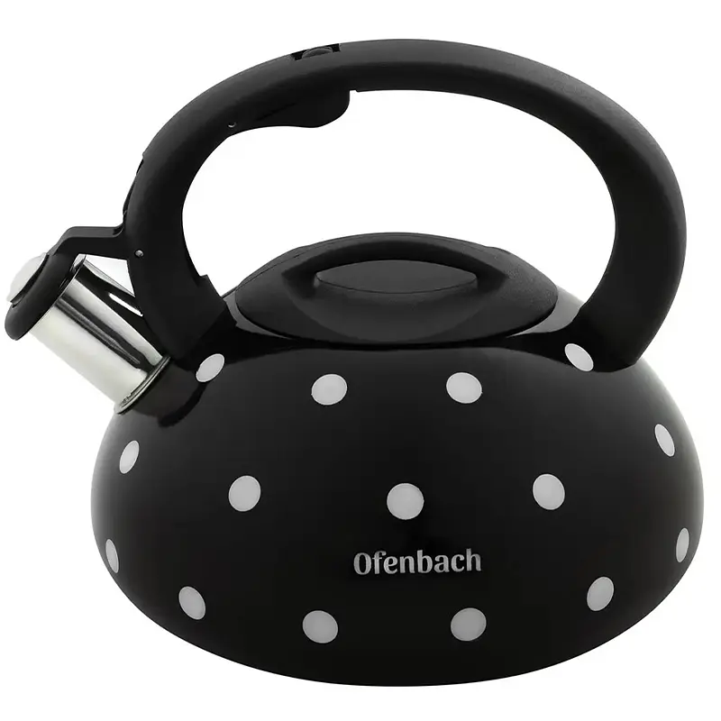 Чайник Ofenbach зі свистком призначений для приготування ароматного чаю та створення атмосфери сімейного чи дружнього чаювання. Виріб виготовлений із високоякісної безпечної нержавіючої сталі, що є гігієнічним матеріалом, стійким до окислення і корозії, який не змінює смак та запах води навіть при високих температурах. Чайник підходить для інтенсивного використання щоденно. Кришка виконана з бакеліту з основою з нержавіючої сталі.