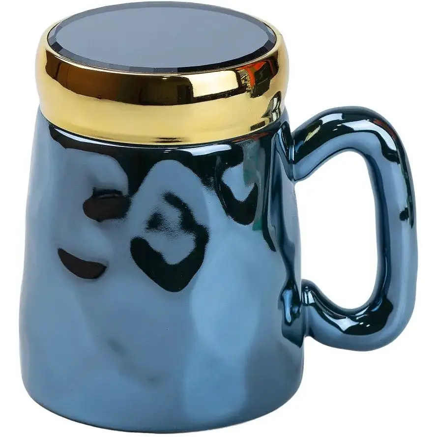 Об'єм чашки 450 мл робить її ідеальною для любителів великих порцій кави, чаю або інших напоїв. Зручна ручка дає змогу комфортно тримати чашку в руці, а ергономічна форма забезпечує приємне відчуття під час пиття. Дзеркальна глазур надає чашці елегантного та стильного вигляду, який чудово доповнить будь-який інтер'єр. Кришка, що йде в комплекті з чашкою, допомагає зберегти тепло напою і запобігти його пролиття.