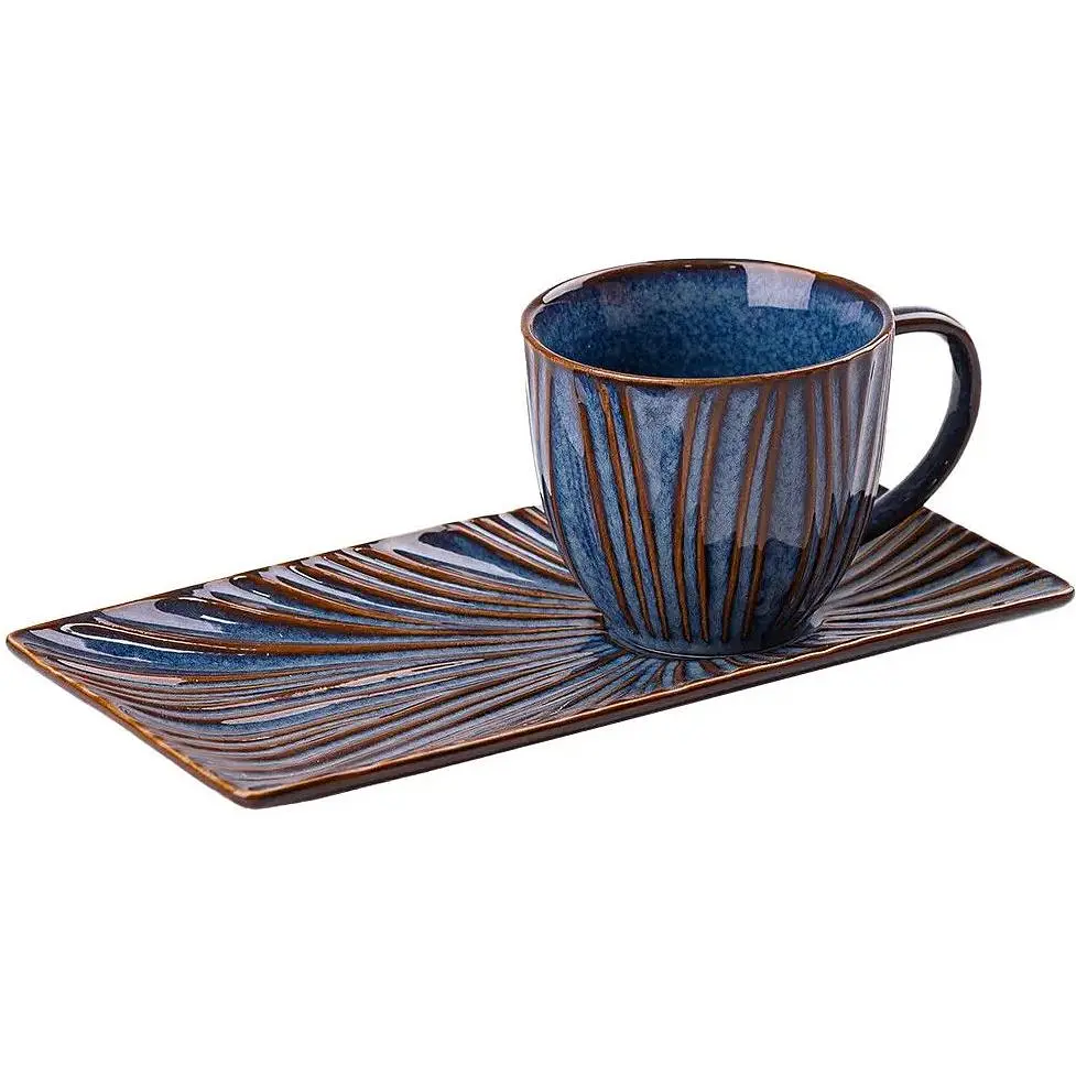 Фарфорова чашка з блюдцем насиченого синього кольору - набір, що володіє особливою вишуканістю і шармом.