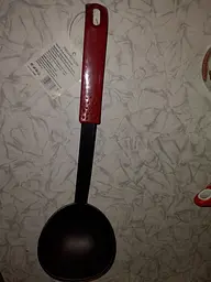 Замовляла геть інший ополоник, його не було в наявності, мені запропонували замінити на цей,я й погодилася. А він зовсім відрізняється від того що на фото. Колір і вигляд інший.