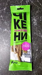 Чікени - це великі, поживні шматочки сушеного м’яса курчат-бройлерів, виготовлені за сучасною технологією зі збереженням смаку, корисних речовин та натуральності продукту. Це дуже смачна закуска, яка має соковитий смак салямі з легкою ноткою копченості. Ідеальний вибір для втамування голоду вдома, на роботі чи в дорозі.