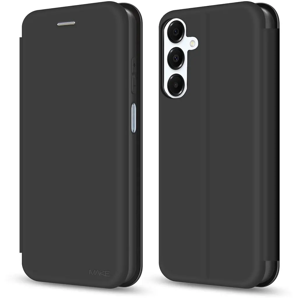 Захист 360 Чохол-книжка Make Flip Case виготовлений з високоякісних матеріалів: термопластичного поліуретану, полікарбонату, поліуретану та мікрофібри. Він чудово захищає ваш смартфон з усіх боків, зберігає пружність, не розтягується, і не рветься. Всередині книжечки вклеєний тонкий матовий кейс, який щільно облягає корпус. Мікрофібра всередині захищає смартфон від подряпин. Сама книжка приємно тримається в руці, повністю розгортається і не погіршує зручність користування. Flip Case прекрасно захищає від бруду і пилу і дуже легко миється. Жорсткий, але пружний, він також прекрасно амортизує удар при падінні. Магнітна Кришка Завдяки магнітному замку, кришка чохла завжди залишається закритою, коли ви не використовуєте смартфон, захищаючи екран. Водночас, вона легко відкривається - зручно і без жодних зусиль. Магнітна Кришка не створює негативного впливу на роботу екрану чи інших частин смартфону. ЗРУЧНА ПІДСТАВКА Flip Case одним легким рухом перетворюється на зручну підставку для вашого смартфона. Насолоджуйтесь переглядом ваших улюблених фільмів та відеороликів з комфортом будь-де. Протестовано в Україні Чимало смартфонів мають різні версії для ринків різних країн: їх розміри і форма можуть суттєво відрізнятись. Ми тестуємо кожну модель на сумісність саме на смартфонах, офіційно продаються в українських торгівельних мережах, тому впевнені у відповідності всіх розмірів і вирізів. Характеристики Назва: Flip Case Виробник: MakeFuture Сумісність: Samsung A16 Товщина: 3 мм Матеріал: Термопластичний поліуретан (TPU), полікарбонат, поліуретан, мікрофібра Колір: чорний
