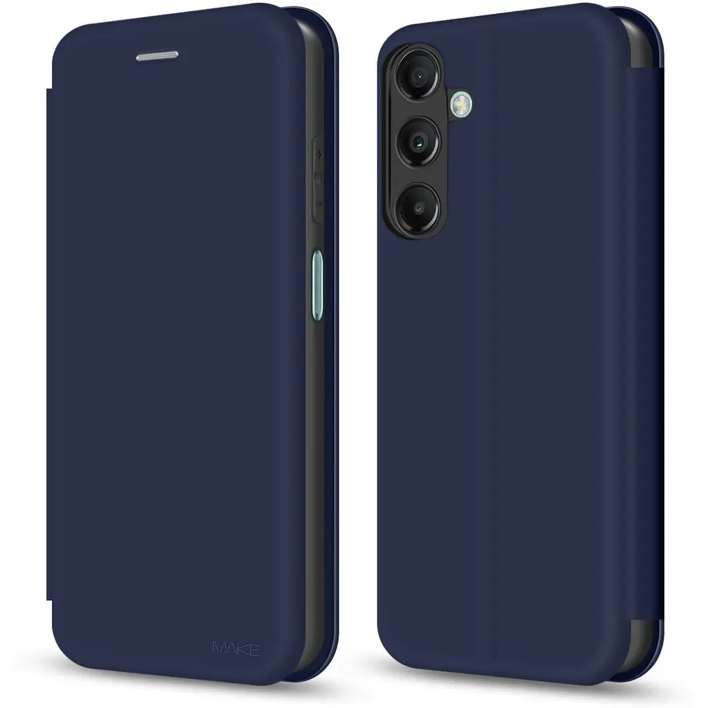 Захист 360 Чохол-книжка Make Flip Case виготовлений з високоякісних матеріалів: термопластичного поліуретану, полікарбонату, поліуретану та мікрофібри. Він чудово захищає ваш смартфон з усіх боків, зберігає пружність, не розтягується, і не рветься. Всередині книжечки вклеєний тонкий матовий кейс, який щільно облягає корпус. Мікрофібра всередині захищає смартфон від подряпин. Сама книжка приємно тримається в руці, повністю розгортається і не погіршує зручність користування. Flip Case прекрасно захищає від бруду і пилу і дуже легко миється. Жорсткий, але пружний, він також прекрасно амортизує удар при падінні. Магнітна Кришка Завдяки магнітному замку, кришка чохла завжди залишається закритою, коли ви не використовуєте смартфон, захищаючи екран. Водночас, вона легко відкривається - зручно і без жодних зусиль. Магнітна Кришка не створює негативного впливу на роботу екрану чи інших частин смартфону. ЗРУЧНА ПІДСТАВКА Flip Case одним легким рухом перетворюється на зручну підставку для вашого смартфона. Насолоджуйтесь переглядом ваших улюблених фільмів та відеороликів з комфортом будь-де. Протестовано в Україні Чимало смартфонів мають різні версії для ринків різних країн: їх розміри і форма можуть суттєво відрізнятись. Ми тестуємо кожну модель на сумісність саме на смартфонах, офіційно продаються в українських торгівельних мережах, тому впевнені у відповідності всіх розмірів і вирізів. Характеристики Назва: Flip Case Виробник: MakeFuture Сумісність: Samsung A16 Товщина: 3 мм Матеріал: Термопластичний поліуретан (TPU), полікарбонат, поліуретан, мікрофібра Колір: Dark Blue