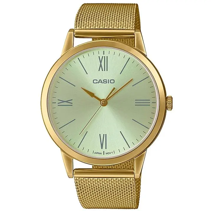 Чоловічий годинник Casio MTP-E600G-9BDF, 100% оригінал, гарантія 24 міс. Ефектна та яскрава модель із колекції Casio STANDARD ANALOGUE вражає своїм стильним дизайном та універсальністю. Сталевий корпус і браслет, золотого кольору, гармонійно поєднується з незвичайним циферблатом салатового кольору, прикрашених римськими цифрами. Міцне мінеральне скло надійно захищає циферблат. Модель Casio MTP-E600G-9B стане чудовим вибором для повсякденного використання, а також виразним аксесуаром, здатним привернути увагу оточення. Цей годинник гармонійно доповнять будь-який образ, надаючи йому особливої нотки стилю. Сталевий браслет з IP-покриттям додає моделі вишуканості, а батарейка на 3 роки забезпечує довгий термін експлуатації. Годинник також має невеликий захист від бризок, що робить його зручним для повсякденного носіння. Коротко кажучи, Casio MTP-E600MG-9B - це вдале поєднання яскравості, стилю та функціональності. Вони стануть незамінним аксесуаром для тих, хто цінує елегантність і унікальність у кожній деталі.